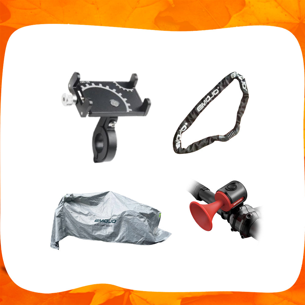 1*phone holder, 1*chain lock, 1*horn, 1*bike cover