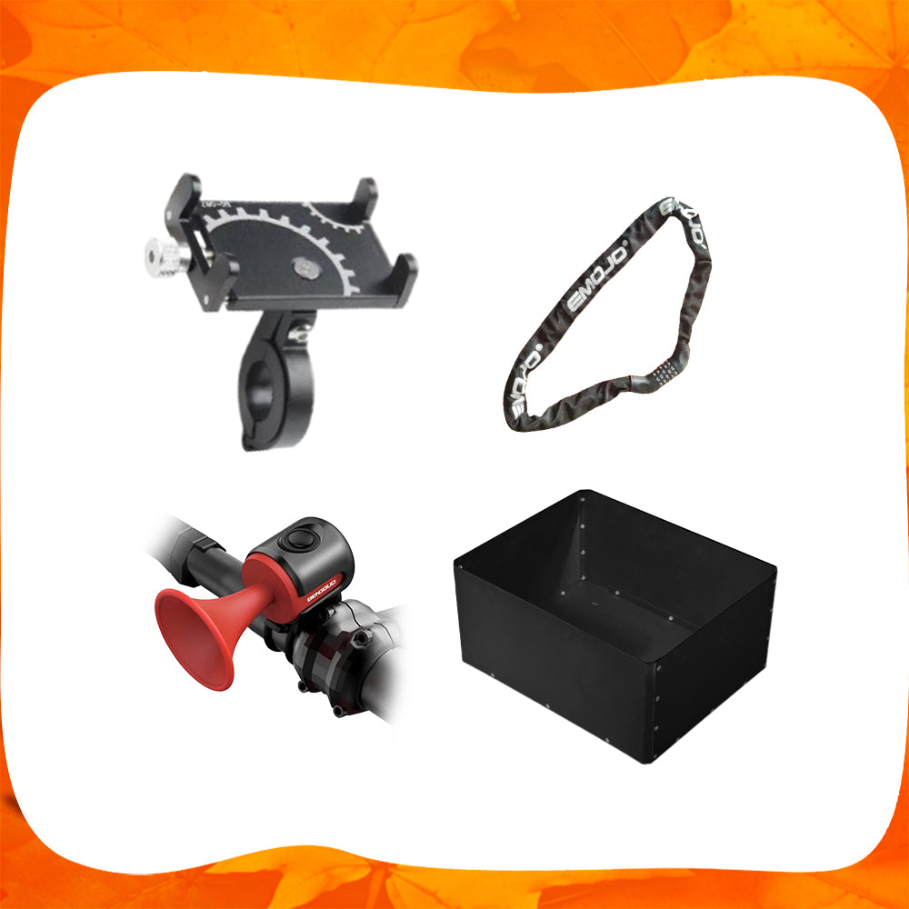 1*phone holder, 1*chain lock, 1*horn, 1*metal box