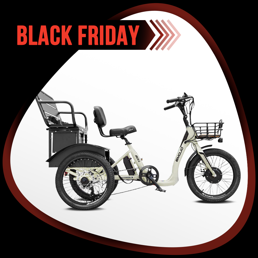 The Emojo Bull trike offers a smooth and adaptable ride with its 7-speed transmission and 500W brushless motor. Its ultra-low step-through design and rear passenger bench make it an ideal choice for seniors or anyone seeking an easy and comfortable riding experience with families!