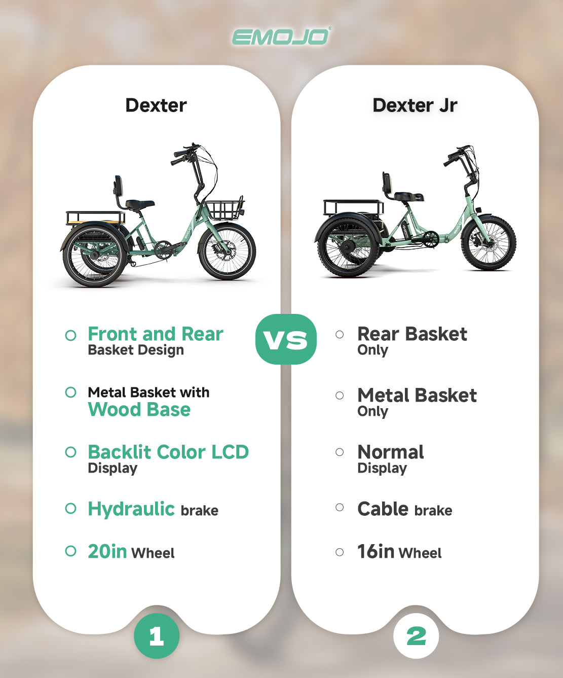 Dexter Jr.’s rear motor drive enhances stability and control by pushing the trike forward from the back. This setup offers smoother handling and better traction, especially when climbing hills or carrying cargo.